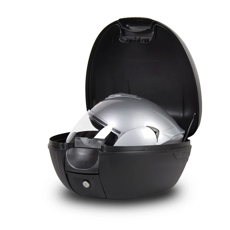 Case with capacity for one helmet. The SH26 is the smallest motorcycle top case of SHAD’s range. It is a compact and practical top case, made with high-quality reinforced polypropylene and with capacity to hold an open face helmet or a small full-face helmet. It has the Press Lock System, a simple and hermetic pressure lock system. As all the SHAD motorcycle top cases, it can be open and closed with only one hand, without the need to use the key to open it. We will only use the key when we want to lock it to the motorcycle. It has a slit that takes the role of ergonomic handle to make it easier to carry.
