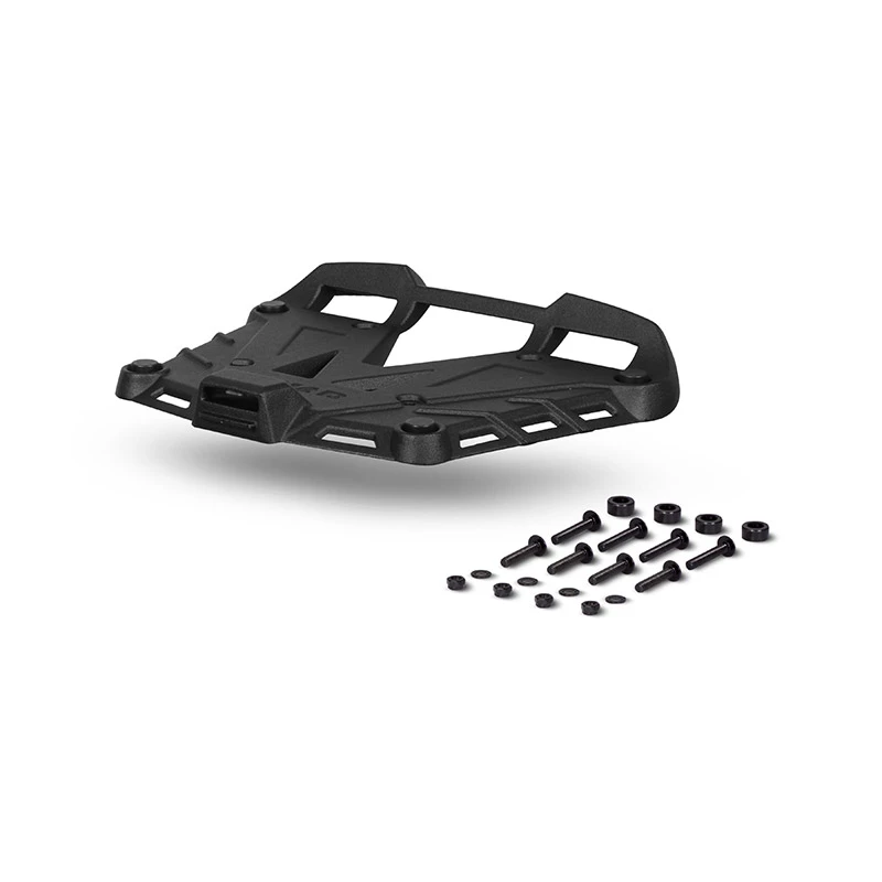 D1BTRPA2: Lightweight and resistant, it is made of hardened cast aluminium in an innovative and functional design. It improves the integration to de motorcycle and incorporates 8 tiedown points, perfect to add a soft bag on top of the mounting plate when the top case is not attached. The metallic paint offers a better resistance to scratches. This mounting plate has been designed and made in Barcelona and it can be used with the top cases of the SHAD TERRA range (TR48, TR37) and with SH59X, SH58X, SH50 and SH48.