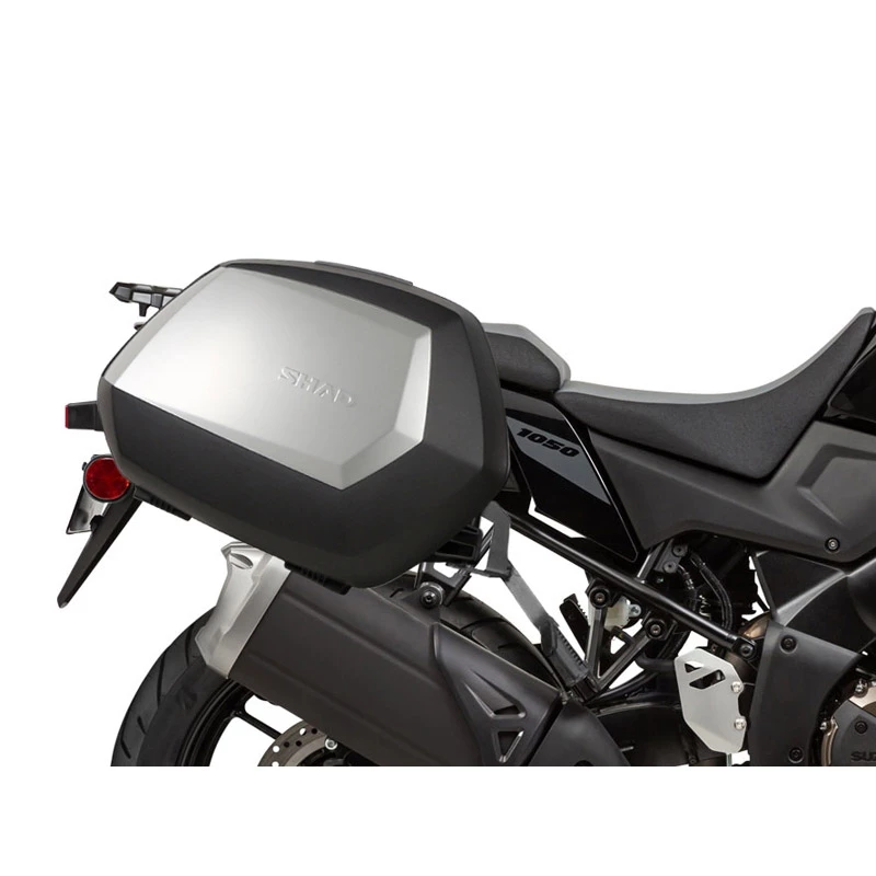 One of SHAD’s most important innovations. The new 3P System side kit’s features are: Integrated design: The side mounting integrates itself better with the bike. Lightness: Less weight to cause nearly no change in the bike’s center of gravity, hence improving safety. Easy to assemble. Fittings to mount side cases onto the motorcycle. NOTE: For the V-STROM 1050XT you must also purchase the S0VS14EF