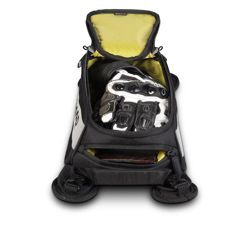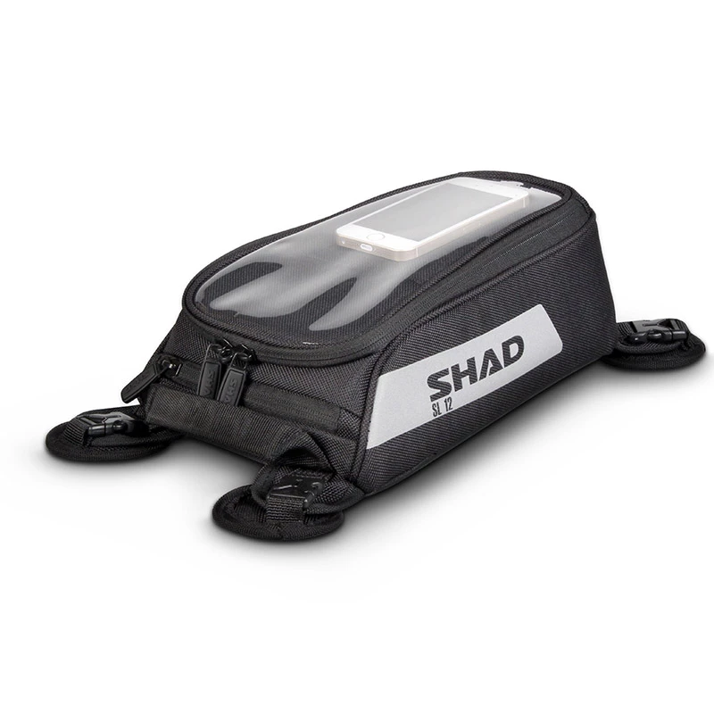 SHAD presents to the market its new line of SL touring bags. With high resistance and quality, the range meets regulations RoHs and Reach. With an attractive design, 100% Barcelona Design. They also have big size reflective elements for greater security. Compact tank bag with reflective elements to increase security. It includes an upper upper compartment with touch screen for Smart Phones. Fixed to the bike with 4 removable magnetts. Features:Zipped main compartment, featuring an inner mesh pocket with elastic closure. Zipped outer pocket. Zipper with resistant pullers suitable to use with gloves. Cushioned carry handle. Adjustable shoulder strap. Upper compartment with touch screen for up to 6” screen Smartphone, with access from the inside. Universal Adaptation: 2 fitting kit systems: INCLUDED: 4 removable magnets. OPTIONAL: Universal tank base (Ref. X1SL90). Cable outlet to pass the USB charger. Several reflective parts for security. ACCESSORY: Waterproof rain cover. Specifications: Size: 10 x 30 x 19 cm. Capacity: 4L. Main material: Polyester.