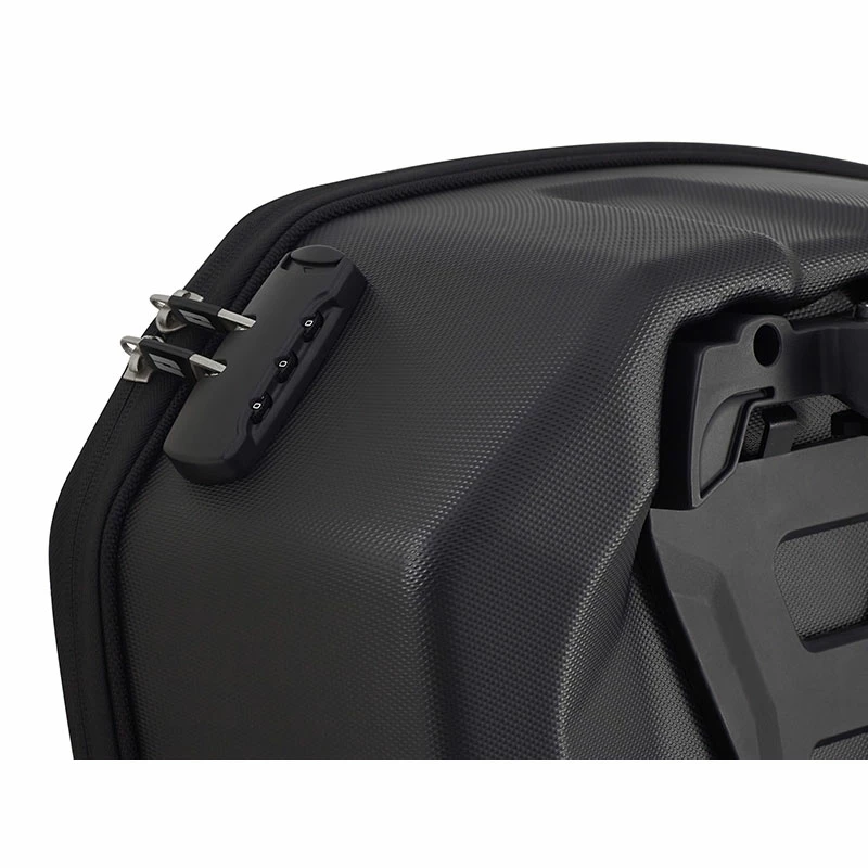 Saddlebags with lock system with keys to the SR fitting which allows to lock by combination the main compartment. The fitting system Side Bag Holder SR offers a perfect aesthetics integration to the motorcycle and ensures a strong and light fitting made from polyamide and glass fibre. They have a capacity of 15 litres per bag and can be easily transported thanks to its red accent piece which integrates the carrying handle.