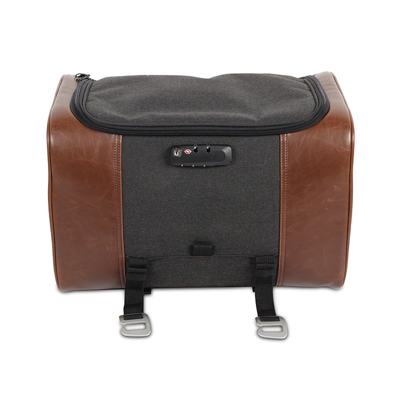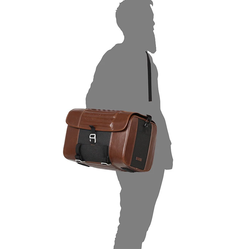 Rear Bag. Rear bag as well as a great gym bag locked with a TSA combination lock. Dimensions: 25 cm x 40 cm x 26 cm. With 27-liter capacity, it has space to a full-face size helmet, and several internal pockets to organize the rider’s belongings. It is easily and quickly attached to the bike thanks to the high-quality Trimmer® aircraft grade aluminium hook system and includes a shoulder strap for easy transport. Capacity: 27 L. Rain cover included. Quick 4 point fitting kit included. TSA approved lockable zippers for better security while travelling. UV Resistance: ISO 105 A 02. Grade 5/5 (Tested 1500 hours). Remove or place bag on bike in seconds with quick clips. Full face helmet capacity sized bag. Padded handle & shoulder strap for comfortable transport. Semirigid structure maintains shape when empty. 3 inner pockets for organizing gear. Trimmer © aluminium ionized clips. Material: 210D lining PU*2 black 600D poly/PU*2.