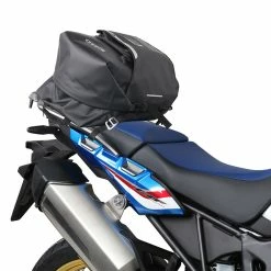 Waterproof Rear Bag SW45. Rear bag with a two full face helmet capacity, in seconds it can be quickly & easily placed or removed from the motorcycle with the aircraft-grade aluminium Trimmer® clips. It can be turned into a comfortable backpack with ergonomic back and shoulder straps that can be hidden to adapt it better to the bike. It has two easily accessible external pockets and an external storage flap, which can hold an integral helmet. Capacity: 40 L. IPX5 100% waterpoof main compartment. Water resistant and glove friendly zippers. Reflective graphics for increased visibility.